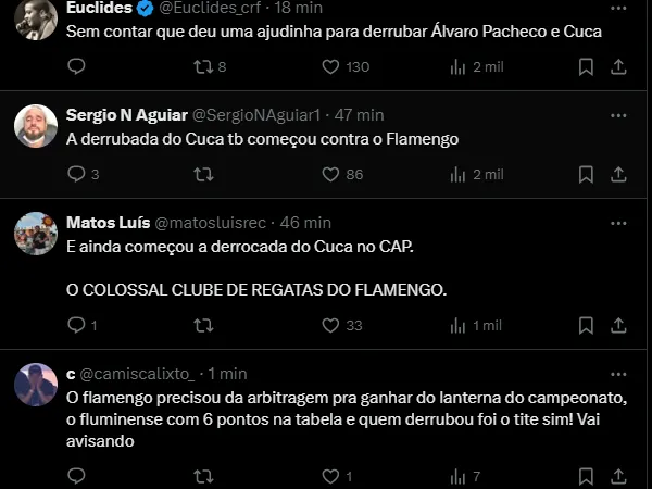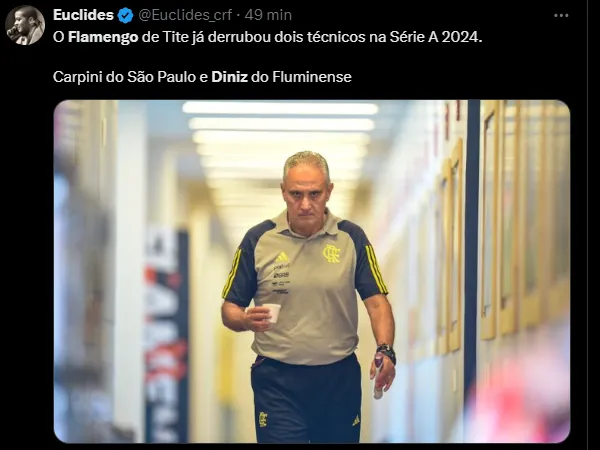 Tite balançou, mas não passou pela queda que vive Fernando Diniz neste momento. Recentemente, o treinador do Mais Querido estava pressionado pela Nação Flamenguista.