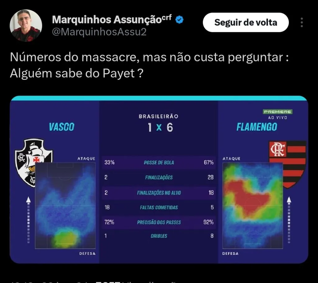 “O craque do time que não chama a responsabilidade. Goza de prestígio com os torcedores sem fazer nada. Payet não fez nada com a camisa do Vasco. Quando o jogo está ruim para ele, ele se esconde mais. Hoje ele se escondeu o tempo todo“, disparou Edmundo contra o camisa dez do Vasco.