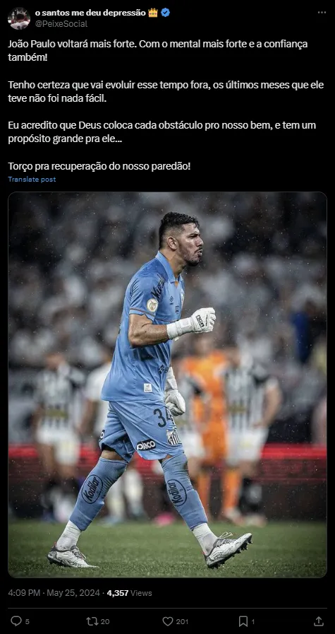Nesta temporada, o titular do Santos soma sete partidas disputadas pela Série B e uma nota avaliada em 6.67, segundo o SofaScore. Contra o América-MG, João Paulo obteve uma nota 4.7.