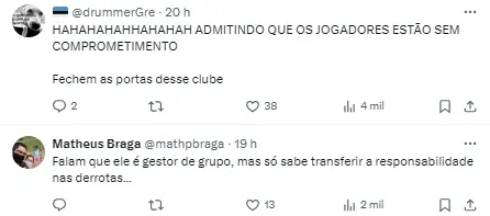 Renato foi duro em sua cobrança, chamando a responsabilidade de cada jogador do elenco. Ele lembrou o título conquistado, mas que os jogadores precisam seguir focados.
