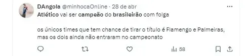 Em contrapartida, o comentarista destacou o bom desempenho do Atlético-MG colocando a equipe como favorita ao título do Campeonato Brasileiro 2024.