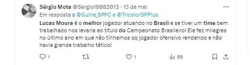 Lucas Moura está à disposição da comissão técnica e pode retornar ao time titular, mas sua presença não é garantida na partida de logo mais.