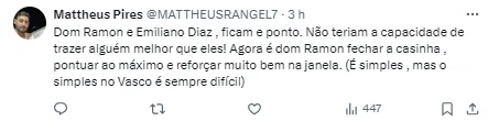 Com o resultado negativo no Brasileirão, o Vasco está na 17ª colocação na tabela de classificação com três pontos conquistados até aqui.