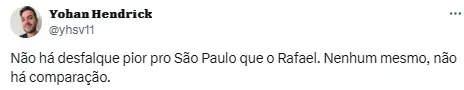 Diante disso, a torcida são-paulina se manifestou nas redes sociais e demonstrou bastante preocupação com o desfalque de Rafael. Confira alguns comentários abaixo (SIC).