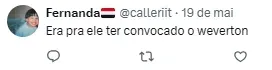 “Convocação merecida, mas ao mesmo tempo desnecessária. Se fosse jogar tudo bem, mas tirar um dos principais jogadores de um clube para ficar na reserva, é sacanagem”;