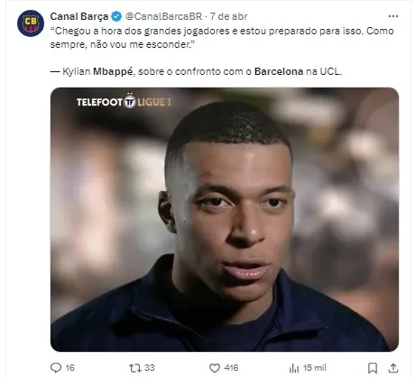 Com o confronto de ida marcado para esta quarta-feira (10), às 16h, Mbappé está determinado a enfrentar o desafio de frente. Em uma entrevista ao canal “Telefoot”, o jovem astro afirmou que não irá se esconder nos momentos decisivos.