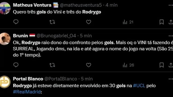 Do lado inglês, Haaland, Foden e De Bruyne foram as principais esperanças de um bom desempenho logo mais; enquanto isso, o trio formado por Vini Jr, Rodrygo e Bellingham estragaram a festa.