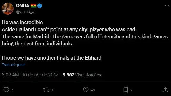 O gol e toda a atuação do Gvardiol foram assuntos com Pep. Vale mencionar que, assim como Rodrygo pelo lado do Real, o zagueiro teve uma das duas melhores notas do embate: o Sofascore avalia o defensor em 7,8.
