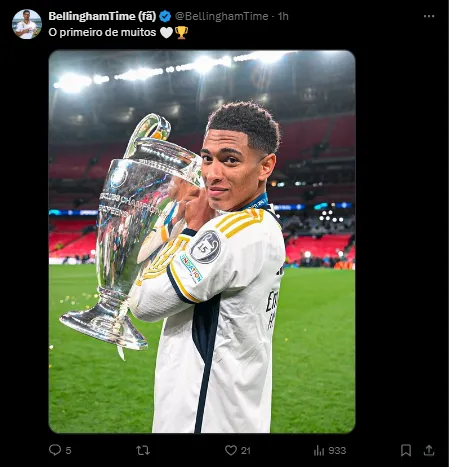 Jude Bellingham, que chegou no início da temporada 2023-24 no Real Madrid, conquistou a La Liga (2023-24), a Supercopa (2023-24) e, mais recentemente, a UEFA Champions League (2023-24).