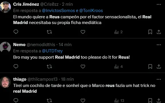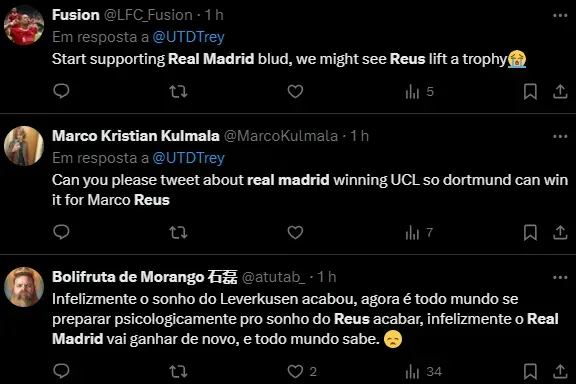 Como estamos nas vésperas da final da UEFA Champions League entre Borussia e Real Madrid, o atacante não poderia deixar de responder especificamente sobre o clube espanhol.