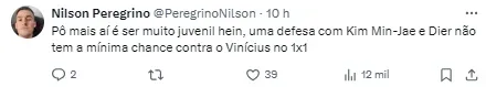 E o jogador teve uma atuação bastante negativa no time durante a partida. Ele ainda fez a falta em Rodrygo que originou o pênalti do gol de empate do Real Madrid.