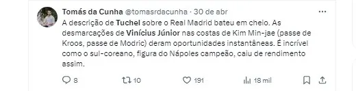 Reconhecendo a versatilidade do jogador, Tuchel ressaltou a necessidade de uma mentalidade forte para enfrentá-lo, destacando também a ameaça representada por outros jogadores do Real Madrid, como Kroos e Valverde.
