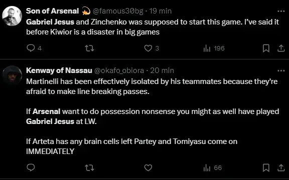 Muitos internautas comentam sobre a diferença que o atleta com passagem pelo Manchester City poderia fazer dentro de campo. No entanto, a decisão do Arteta foi de segurar o medalhão até o limite.