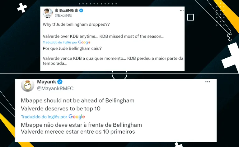O craque francês é o segundo da lista, atrás de Vini Jr, e à frente de Jude Bellingham e Kroos. O 5º lugar fica com Rodri, do Manchester City, campeão da Premier League da temporada.