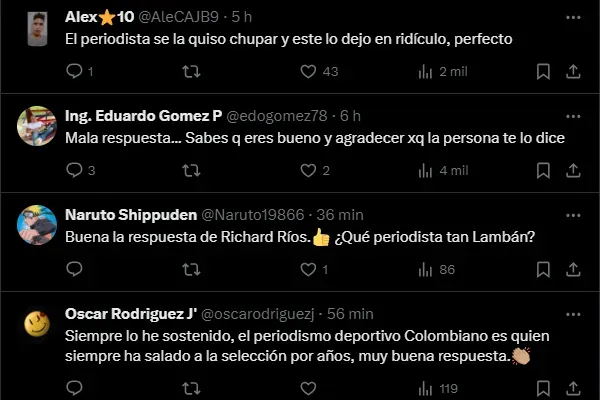 Richard é um dos destaques da equipe comandada pelo técnico Néstor Lorenzo, que elogiou o atleta do Palmeiras: “Não tive a oportunidade de falar com (Abel) Ferreira sobre o Ríos, mas eu simplesmente via o que ele aportava em campo (pelo Palmeiras), mesmo quando não era titular”, disse.