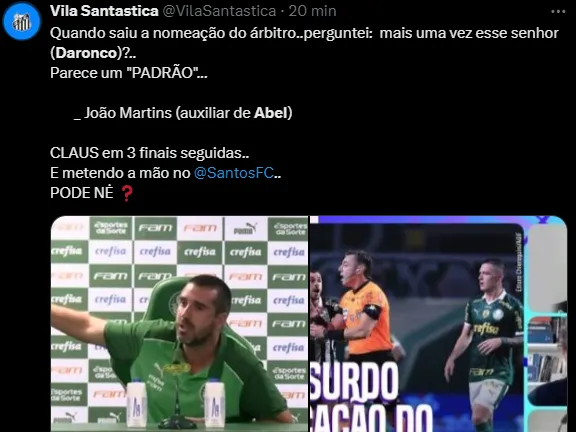 A arbitragem teria visto gesto obsceno de Abel e recomendou a analise no vídeo. Nas imagens, Daronco constatou que o português do Verdão merecia o cartão vermelho direto. Craque Neto diz que já pode entregar a taça.