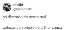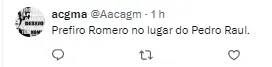 Torcedores do Corinthians se manifestaram nas redes sociais e comentaram que Romero seria a melhor opção para o lugar de Pedro Raul nesta partida.