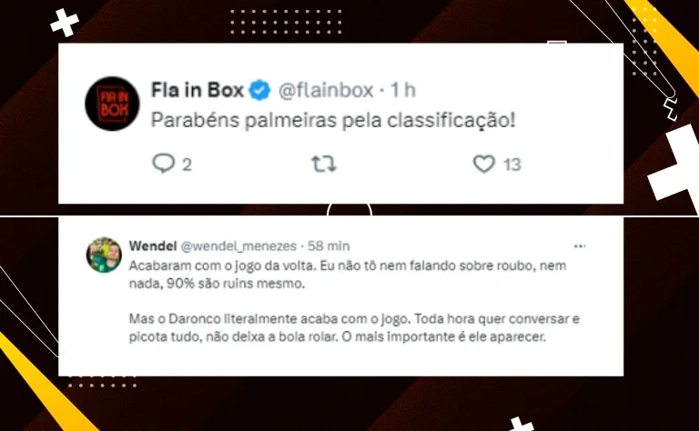 Palmeiras e Flamengo, por exemplo, que terminou com a vitória do Rubro-Negro por 2 a 0 no jogo de ida, no Maracanã, terá Anderson Daronco apitando a partida. No jogo de ida, Braulio da Silva Machado foi o escolhido.