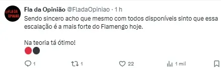 Diante da informação da possível entrada de Leo Ortiz e sobre a provável escalação, a torcida comemorou, já que o jogador não atua como titular desde o começo deste mês. Muitos torcedores questionavam o motivo da ausência do atleta.