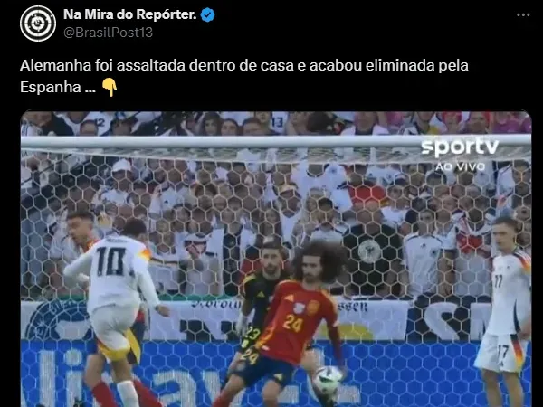 Em contrapartida, os internautas apontam que a Seleção Alemã foi “assaltada” em pênalti não marcado após a bola bater na mão do Marc Cucurella na finalização de Musiala.