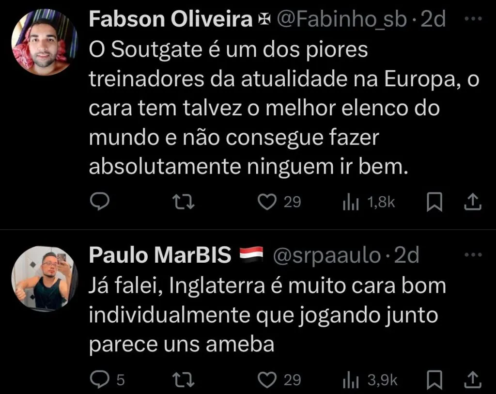 Além disso, a Inglaterra teve os polêmicos cortes de James Maddison e Jack Grealish, o que não caiu bem no vestiário da seleção.