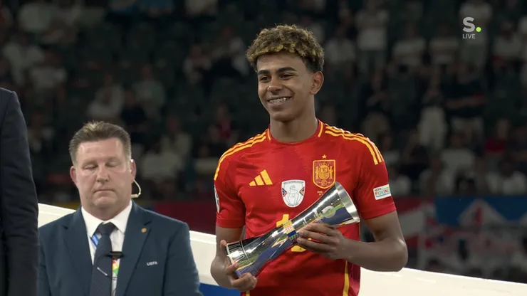Atacante do Barcelona e maior assistente da Euro 2024, Lamine Yamal vence o prêmio de melhor jovem jogador da competição.