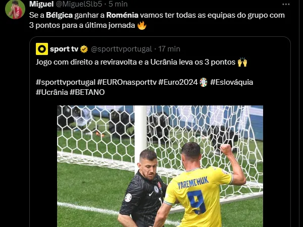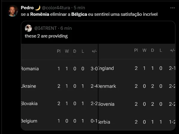 Em contrapartida, a Romênia venceu a Ucrânia por 3 a 0. Os ucranianos acabam de virar o jogo contra a Eslováquia por 2 a 1. Caso os belgas vençam no final de semana, todos ficam empatados com três pontos.