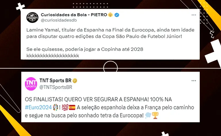 Além disso, no ataque, Lamine Yamal tem representado. O jogador do Barcelona, que hoje (13) completa apenas 17 anos de idade, se consolidou como um novo astro do futebol europeu.
