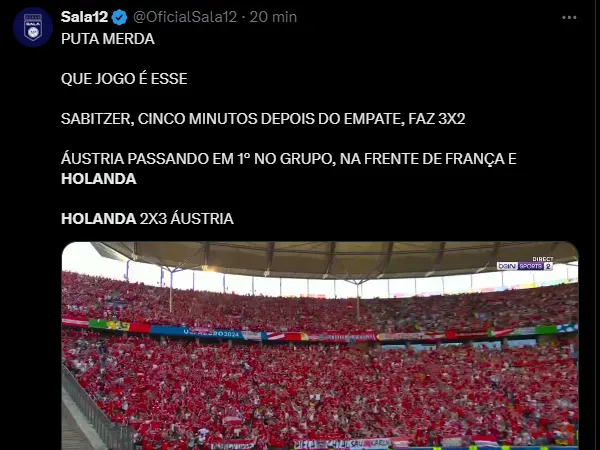 A Áustria perdeu para a França para depois vencer a Polônia e há instantes os holandeses. Xavi Simons, Gakpo e outros nomes não conseguiram gerar influência para mudar o rumo da Euro, assumindo o risco de pegar adversários mais fortes com o avanço em 3º.