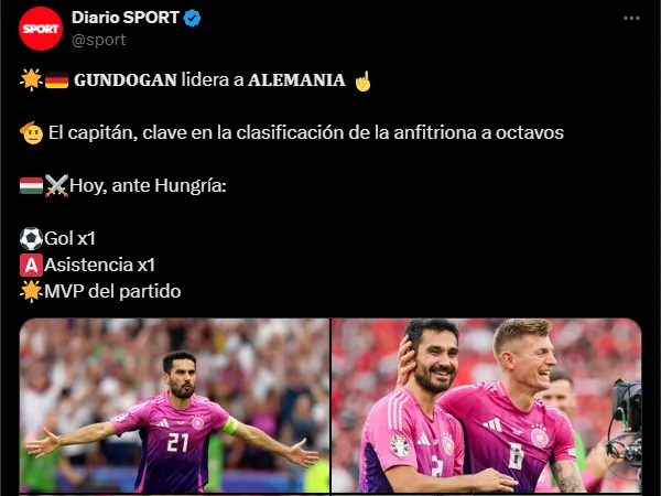 Com gols de Jamal Musiala e Ilkay Gundogan, a Alemanha venceu a Hungria pelo placar de 2 a 0 para confirmar a classificação às oitavas de final da Eurocopa 2024.