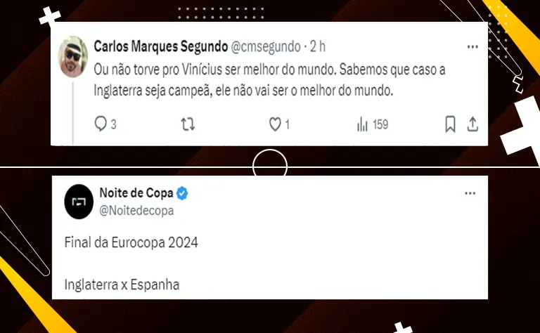 Espanha x França, pela grande final da Eurocopa 2024, terá a transmissão do Grupo Globo (SporTV e Rede Globo) e da Cazé TV, no YouTube. A bola rolará a partir das 16h, no horário de Brasília.
