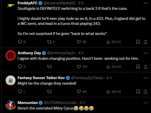 Os ingleses acreditam que o técnico Gareth Southgate precisa fazer a seleção jogar mais do que vem demonstrando nesta edição da Eurocopa. Phil Foden e Jude Bellingham são um dos mais mencionados por estarem rendendo abaixo.