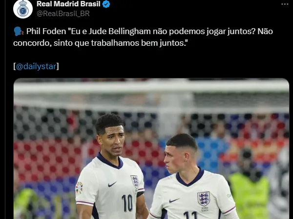 Phil disse que tem entrosamento com o craque do Real Madrid: “Eu e Jude Bellingham não podemos jogar juntos? Não concordo, sinto que trabalhamos bem juntos”, disse.