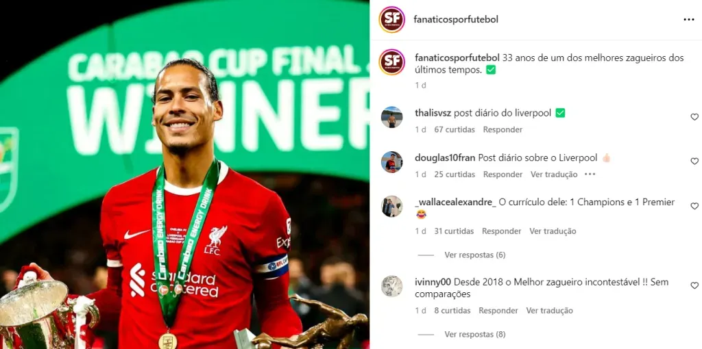 Virgil defende as cores do Liverpool desde o ano de 2018, quando foi comprado pelos Reds por incríveis 75 milhões de libras. Seis anos depois, ele conquistou tudo o que disputou em Anfield Road.