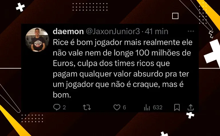 O ex-jogador não poupou palavras ao expressar seu descontentamento com as atuações de Rice durante a Eurocopa 2024. Criticando abertamente o desempenho e o valor de sua transferência para o Arsenal.