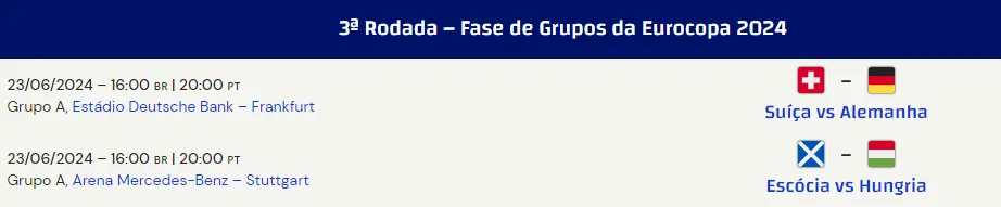 Eurocopa: Agenda do dia (23/06) , tudo sobre os jogo do dia
