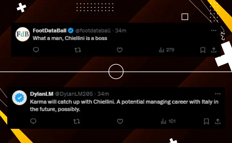 De modo a retribuir o carinho do ex-defensor italiano, o atacante, que está a caminho de clube da Série A, expressou seus sentimentos sobre o apreço que tem por Chiellini.