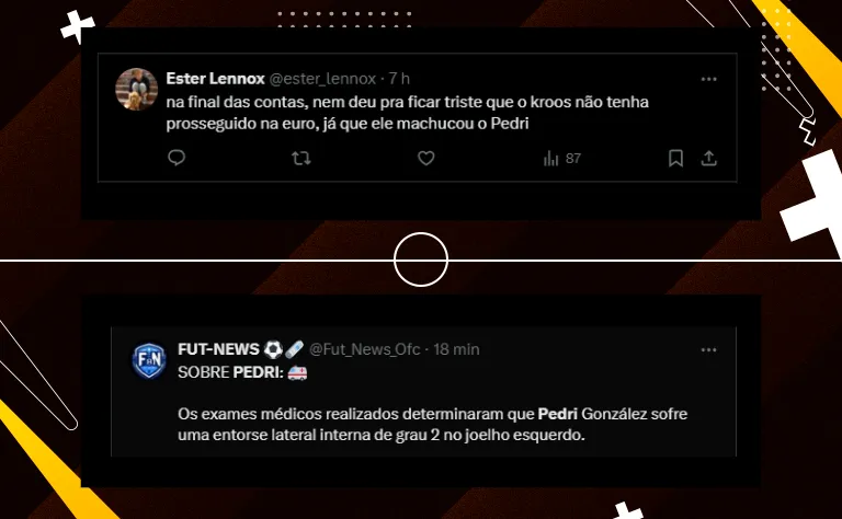 A lesão foi sofrida nos primeiro minutos da vitória da seleção espanhola por 2 a 1 sobre a Alemanha, na última sexta-feira (5), na Arena Stuttgart, em duelo válido pelas quartas de final da Eurocopa 2024.
