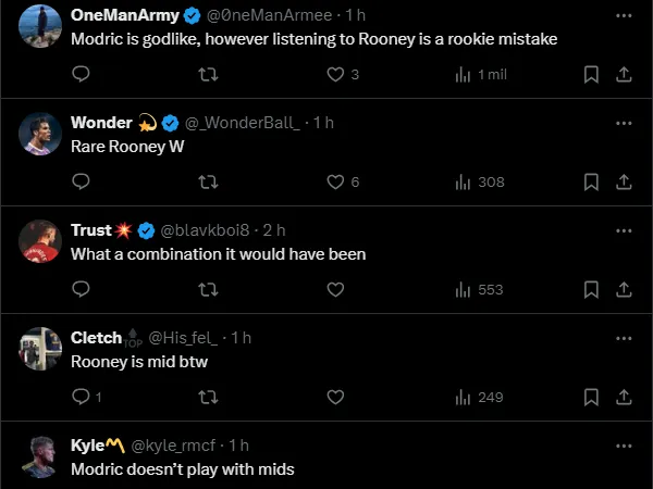“Só posso imaginar que jogar com Modrić seria um sonho absoluto”, destacou Rooney ao ponderar como seria ter atuado ao lado do camisa 10 e melhor do mundo em 2018.