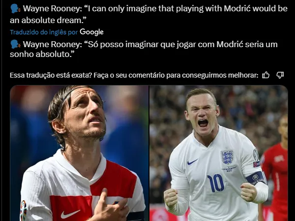 Wayne Rooney está encantado com Luka Modric, craque do Real Madrid e da Croácia na disputa da Eurocopa 2024. Hoje, a lenda tornou-se o jogador mais velho a marcar no torneio organizado pela UEFA.