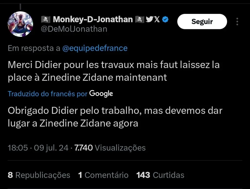 Através de comentários feitos nas redes sociais da Federação Francesa após o fim do jogo contra a Espanha, os torcedores demonstraram um interesse em um novo técnico. O nome aclamado pelo povo, é o de Zinedine Zidane.