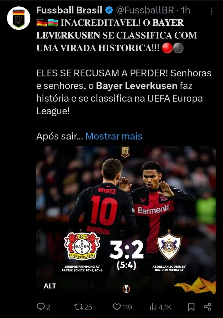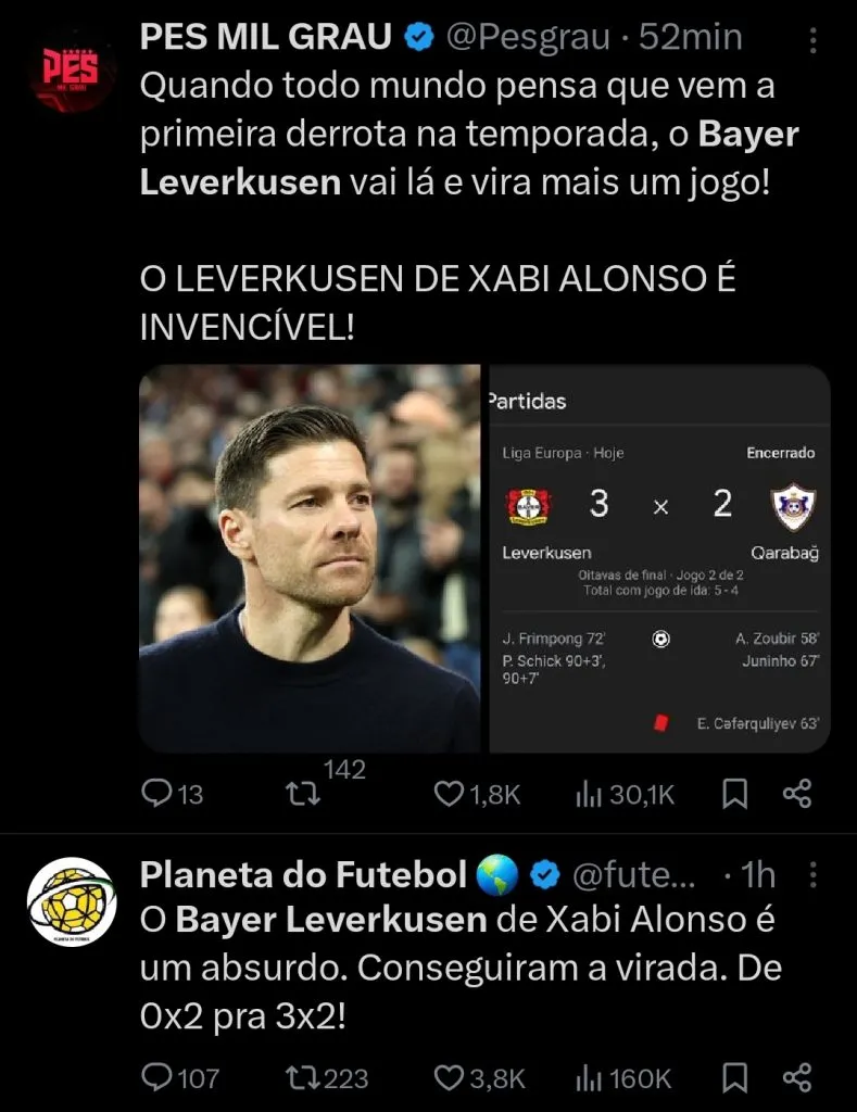 Líder isolado da Bundesliga, nas quartas de final da Liga Europa e nas semifinais da Copa da Alemanha, o Bayer Leverkusen acaba de dar importante passo rumo à tão sonhada tríplice coroa.
