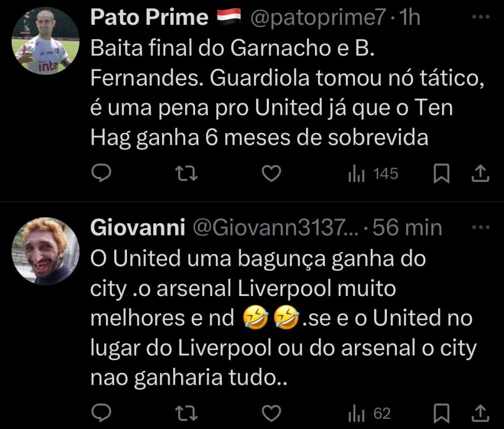 O domínio do City não se traduzia em muitas oportunidades claras de gol. O United recuperou a bola e, em uma troca de passes envolvente, Bruno Fernandes encontrou Mainoo, que venceu Ortega e ampliou a vantagem para a equipe de Erik ten Hag.