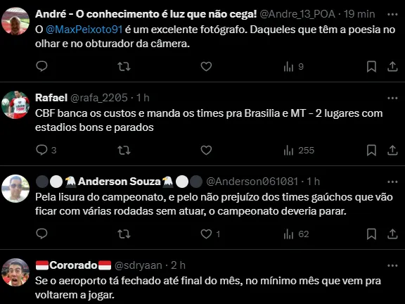 Vale lembrar que, com o aero fechado por quase 1 mês, a locomoção fica restrita aos meios terrestres. Atualmente, os treinamentos estão sendo interferidos pelo nível da água e jogadores ajudam nos resgates.