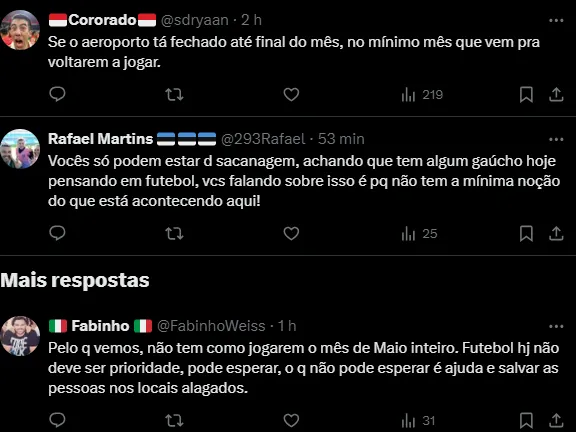 No Sul, além da dupla Gre-Nal, Juventude, Ypiranga e Caxias são outros times afetados. Entretanto, há quem dê ideia para que os confrontos possam continuar acontecendo.