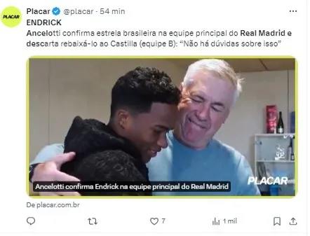 Apesar das especulações sobre a competição por espaço no time com a possível chegada de Mbappé, Ancelotti deixou claro que Endrick terá a oportunidade de se destacar e contribuir para a equipe.