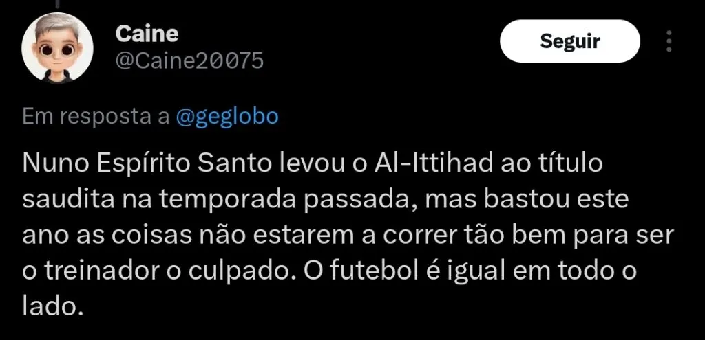 Nuno estava comandando a equipe do Al Ittihad desde julho de 2022. Seu trabalho mais notável até o momento, foi na equipe do Wolverhampton, quando ele assumiu em 2017, e deixou em 2021 para comandar o Tottenham.