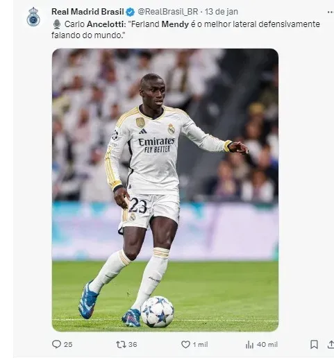 Entretanto, o treinador do Real Madrid, Carlo Ancelotti, saiu em defesa de Mendy em resposta às especulações. Em uma entrevista nesta semana, Ancelotti revelou sua visão sobre o jogador.