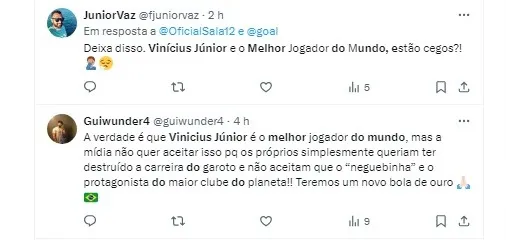 Com performances impressionantes de ambos os jogadores, a disputa pelo título de melhor do mundo promete ser acirrada, com Vinícius Júnior ganhando cada vez mais destaque e reconhecimento por sua influência no jogo e capacidade de decisão.
