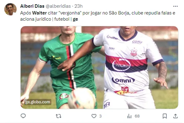 Sobre sua passagem no São Borja, Walter relatou que o clube não aparentava ser profissional e acrescentou: “Falaram que iam me pagar e não me pagaram. Tenho vergonha de dizer que joguei lá, tipo assim… E não foi só para mim. Foi também para outras pessoas. Aquilo não parecia profissional. É esse time que eu não quero nem saber”.